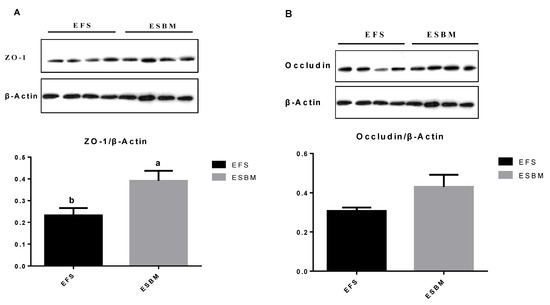 According to Table 7 and Figure 1, pigs fed ESBM showed enhanced (p < 0.05) the protein expression of ZO-1 in jejunal mucosa compared with pigs fed EFS.