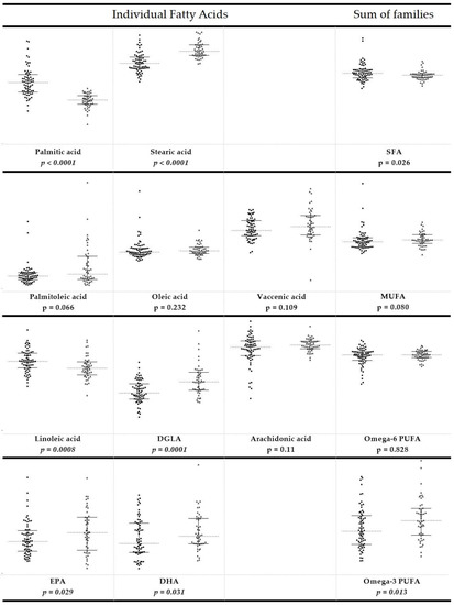 3.2. Fatty Acid-Based RBC Membrane Analysis