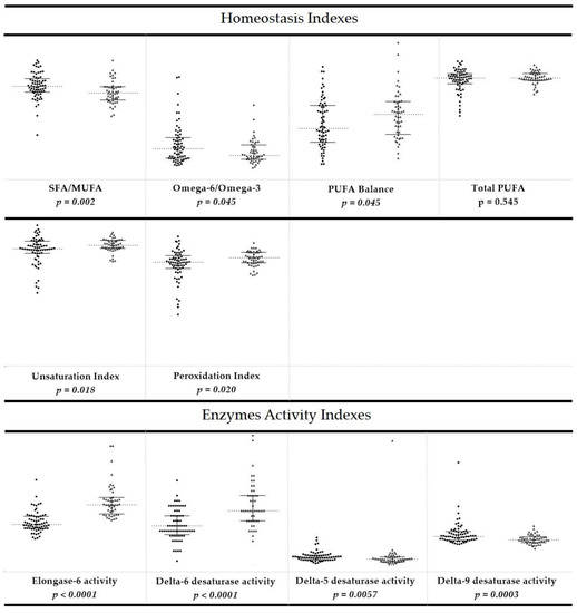 | Peroxidation Index | 160.7–181.9 | 17 (35.4%) | 5 (10.4%) |