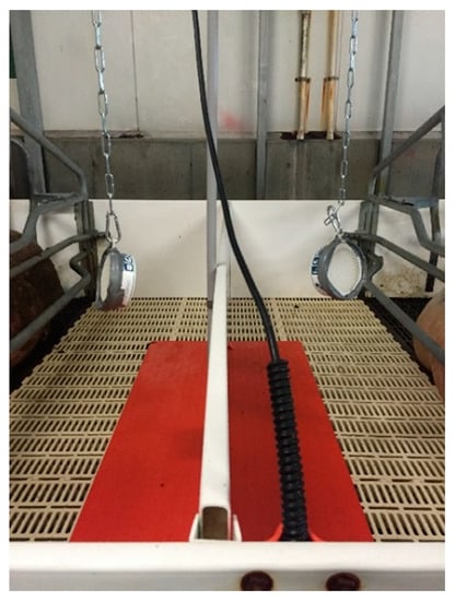 - Hrupka, B.J.; Leibbrandt, V.D.; Crenshaw, T.D.; Benevenga, N.J. The effect of farrowing crate heat lamp location on sow and pig patterns of lying and pig survival. J. Anim. Sci. 1998, 76, 2995–3002. [Google Scholar] [CrossRef] [PubMed]