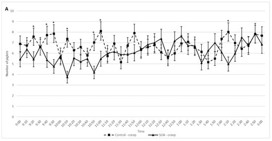| Weaning | 10.3 ± 0.1 | 10.3 ± 0.1 | 0.728 | 10.2 ± 0.1 | 10.4 ± 0.2 | 0.292 |