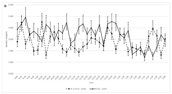 | Log10 birth to udder, min # | 1.1 ± 0.02 (13.68) | 1.1 ± 0.02 (11.99) | 0.068 |