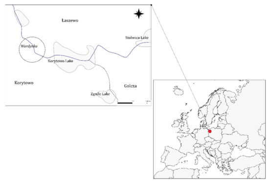Research area in the Wardynka river, 53°08′47.0″ N 15°34′00.8″ E.