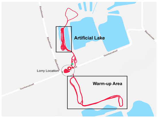Statistical analysis was carried out using IBM SPSS (version 25, SPSS Inc., Chicago, IL, USA). The significance level was set at p < 0.05. Data were analysed for normal distribution (Shapiro-Wilk’s test). Mean speed and HR values were calculated for WU, RWST (interval breaks not included), and CD. Start and finish times within each condition were estimated based on the GPS location where horses entered into each area (Figure 2).
