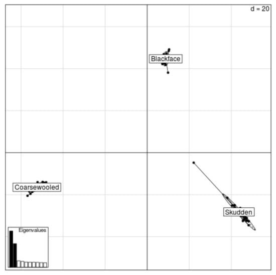| Dorset Horn | Britain | 21 | 18,799 | 0.981 | 0.25 | 0.36 | 0.34 | 0.06 | |