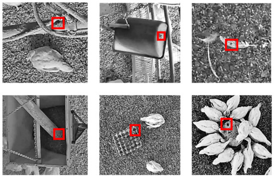 Example images of annotations of the network (on stable equipment and pecking objects in the litter), which were clearly assessed as “no injury” by human observers creating high-quality annotations. The originally annotated areas on the sample images (which were shown in black and white for better visibility) were framed with red bounding boxes for easier identification.