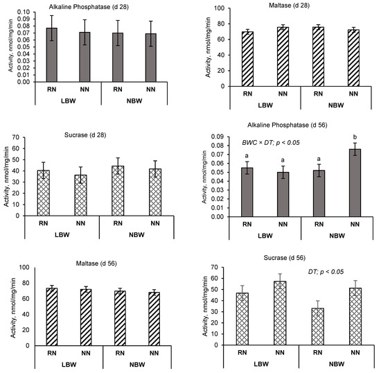 4.1. Birth Weight and Nutrition Effect on Enzyme Activity