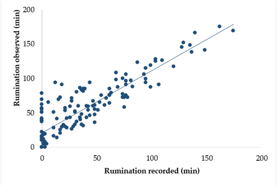 | Rumination time | 39 ± 40.9 | 56 ± 42.1 | 17 | 04 | 0.89 | 0.80 | 0.40 |