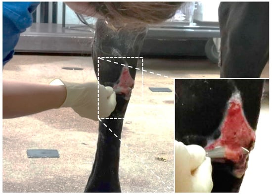 - Jacobs, K.A.; Leach, D.H.; Fretz, P.B.; Townsend, H.G.G. Comparative Aspects of the Healing of Excisional Wounds on the Leg and Body of Horses. Vet. Surg. 1984, 13, 83–90. [Google Scholar] [CrossRef]