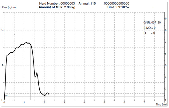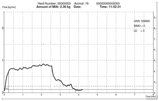 Milk emission curve recorded by the Lactocorder device to show the emission curve that characterizes other European breeds (high average milk flow).