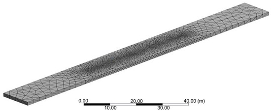 Structural representation of the tetrahedral mesh of the studied broiler house with 13 m in width, 160 m in length.