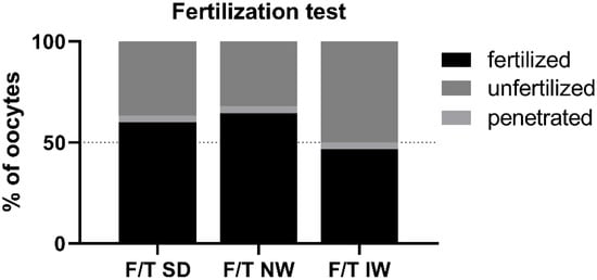 Penetration/fertilization test for each examined breed. F/T—frozen/thawed, SD—Slovak Dairy, NW—Native Wallachian, and IW—Improved Wallachian.