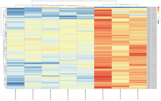 Heatmap of differentially expressed genes affected by taxifolin treatment under increased temperature.