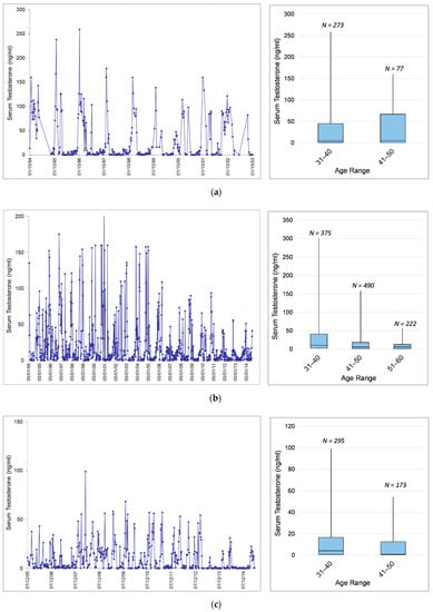 - Morley, J.E.; Kaiser, F.E.; Perry, H.M.; Patrick, P.; Morley, P.M.K.; Stauber, P.M.; Vellas, B.; Baumgartner, R.N.; Garry, P.J. Longitudinal changes in testosterone, luteinizing hormone, and follicle-stimulating hormone in healthy older men. Metabolism 1997, 46, 410–413. [Google Scholar] [CrossRef]