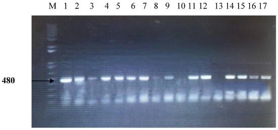 The ITS-1 gene fragments were amplified using TBR-1 F (GAATATTAAACAATGCGCAG) and TBR-2 R (CCATTTATTAGCTTTGTTGC), and they were given an 177 bp amplification product Masiga et al. (1992) [17]. The TBR PCR reaction was started in 25 μL at 95 °C for 10 min. The 40 cycles were initiated with denaturation for 30 s at 95 °C, followed by annealing for 45 s at 53 °C and extension for 30 s at 72 °C. The final extension was carried out for 7 min at 72 °C. The PCR product was checked in 1.5% agarose gel stained with a safe sybr DNA gel (Invitrogen 10X TAE Buffer; Vilnius, Lithuania). The band size was determined using a well loaded with a 1 kb ladder (Invitrogen; Vilnius, Lithuania).