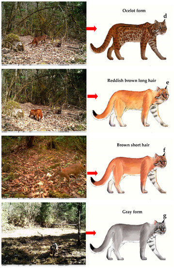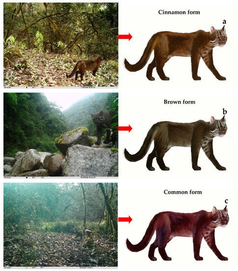 - Nijhawan, S.; Mitapo, I.; Pulu, J.; Carbone, C.; Rowcliffe, J.M. Does polymorphism make the Asiatic golden cat the most adaptable predator in the Eastern Himalayas? Ecology 2019, 100, e02768. [Google Scholar] [CrossRef]