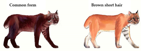 - Weigel, I. Das Fellmuster der Wildlebenden Katzenarten und der Hauskatze in Vergleichender und Stammesgeschichtlicher Hinsicht. In Säugetierkundliche Mitteilungen; WorldCat: Dublin, OH, USA, 1961; p. 120. [Google Scholar]