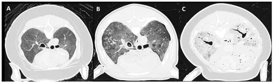 - Thierry, F.; Handel, I.; Hammond, G.; King, L.G.; Corcoran, B.M.; Schwarz, T. Further characterization of computed tomographic and clinical features for staging and prognosis of idiopathic pulmonary fibrosis in West Highland white terriers. Vet Radiol. Ultrasound 2017, 58, 381. [Google Scholar] [CrossRef] [PubMed] [Green Version]