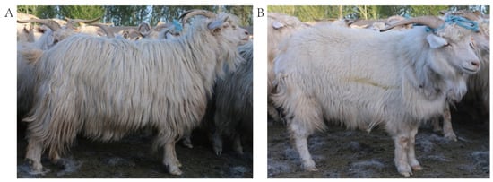 - Na, Q. Genetic Pattern of Different Types of Hair Coat in Inner Mongolia Cashmere Goat and Their Effect on Important Economic Traits. Master’s Thesis, Inner Mongolia Agricultural University, Hohhot, China, 2016. [Google Scholar]