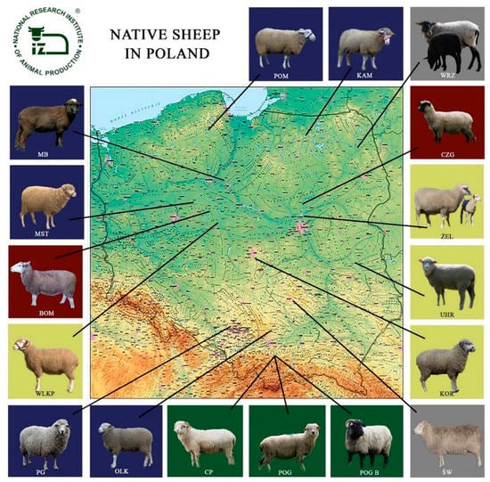 Domestic sheep (Ovis aries) are one of the most numerous and earliest domesticated animal species. Since the beginning of domestication, which probably dates back approximately 11,000–9000 years ago in central or Southwestern Asia [1], sheep have accompanied humans in their migrations and colonisation of successive areas. Due to their versatility of use, their importance grew. As the animals moved, they adapted to new conditions. Distinct types of sheep began to develop in terms of physical and physiological characteristics, resulting in breeds that later became an effect of the conscious actions of breeders. Sheep are the species of greatest breed diversity of livestock; according to the World Watch List, there are 1400 breeds worldwide [2]. In 2018, 1520 sheep breeds were recorded, with the Europe and the Caucasus regions being the richest in this respect, with more than half of all known sheep breeds, while North America is the least diverse [3]. Local sheep breeds account for 80% of all sheep breeds worldwide and over 200 sheep breeds are recognised as transboundary, of which more than half are regional breeds. An example of international transboundary breeds is the Suffolk meat sheep found in as many as 46 countries, Texel in 32, Caraculas in 25, and Awassi and East Friesian dairy sheep in 20 countries [4].