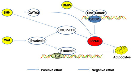 Mechanism for SHH and Wnt signaling. COUP-TFII binds to PPARγ and C/EBPα to inhibit expression [23].