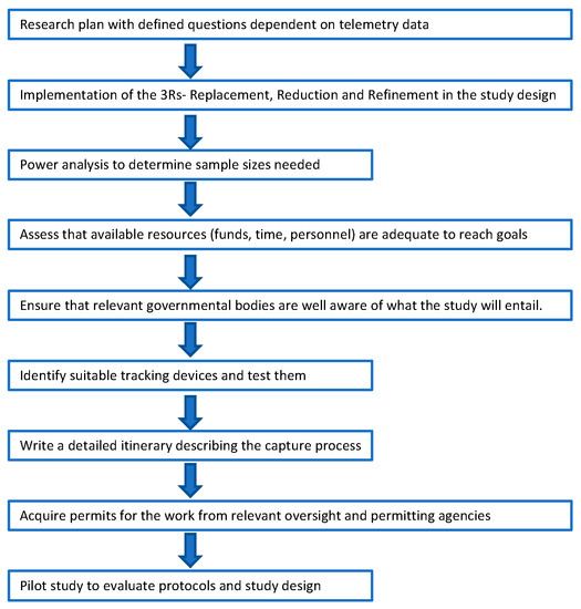 - Pollock, K. Experimental design of telemetry projects. J. Raptor Res. 1987, 21, 129–131. [Google Scholar]