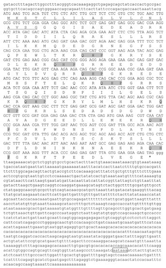 - Larkin, M.A.; Blackshields, G.; Brown, N.P.; Chenna, R.; McGettigan, P.A.; McWilliam, H.; Valentin, F.; Wallace, I.M.; Wilm, A.; Lopez, R.; et al. Clustal W and Clustal X version 2.0. Bioinformatics 2007, 23, 2947–2948. [Google Scholar] [CrossRef]