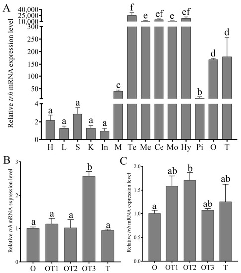 3.3. The Expression Pattern of trh mRNA in Various Tissues and during Sex Reversal