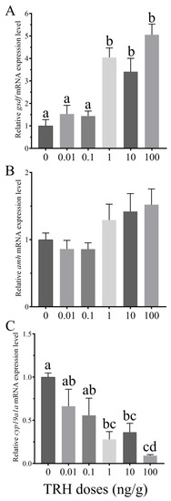 3.5. In Vitro Effects of TRH on the Expression of gsdf, amh and cyp19a1a