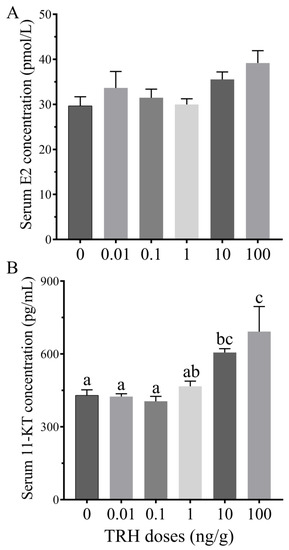 3.7. Effect of TRH Injection on Serum E2 and 11-KT Levles