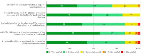 Finally, we asked the respondents to rate how useful they perceived the five different sub-elements of the concept when providing herd health consultancy regarding medicinal zinc removal and PWD. Finally, we asked whether the respondents would like to receive the final concept when it was developed, and if so, we requested their e-mail addresses. We disseminated the questionnaire to all Danish veterinary pig practitioners who were responsible for the herd health consultancy in at least one weaner pig herd as of 31 August 2020. The study population (n = 112) and their e-mail addresses (n = 90) were obtained as previously described [20]. Questionnaires were sent out electronically using SurveyXact (Rambøll Management Consulting A/S) as of 14 September 2020, and a reminder e-mail was sent to non-responders 21 September 2020. The data was interpreted based on descriptive statistics.