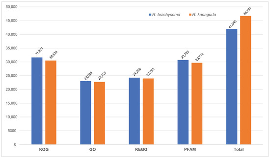 Functional annotation statistics for R. brachysoma and R. kanagurta.