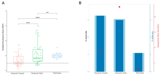 4.4. Effects of Different Gut Microbial Compositions on Domestic Females and Males and Wild Males