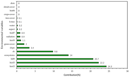 Contribution of environmental variables to the performance of the MaxEnt model.