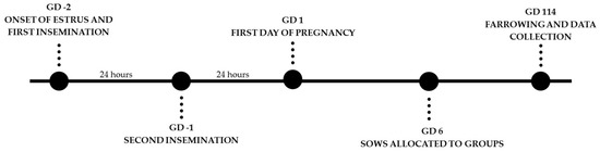 Over the last decades, pig breeding programmes aimed for a bigger litter size to increase the profitability of pork production systems, as the piglet is the final product of this chain [1]. Sows ovulated on average 15 oocytes in the nineties [2], and this ovulation rate has increased by 65–100% nowadays [1]. Hyperprolific modern females can have ovulation rates between 25 and 30 oocytes. However, the number of total piglets born was not augmented in the same proportion. Approximately 30 to 50% of the ova released from the ovary do not survive throughout gestation [3]. Thus, together with higher ovulation rates, this intense selection led to a disproportional increase in prenatal mortality [4,5], mostly due to an increase in both pre- and post-implantation loss [3,4].