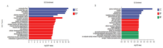 Gene ontology (GO) functional annotation and classification of differentially expressed genes (DEGs). (A) GO functional classification (Ad-DGAT2). (B) GO functional classification (sh-DGAT2). CC (cellular compound), BP (biological process), MF (molecular function).
