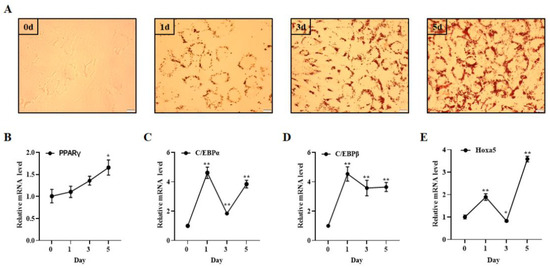 3.1. Hoxa5 Expression Changed during Goat Subcutaneous Preadipocytes Differentiation