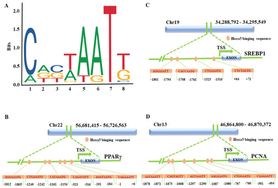 3.4. Hoxa5 Affects Subcutaneous Preadipocytes Proliferation and Differentiation Possibly Targets the Promoter of PPARγ, SREBP1, and PCNA