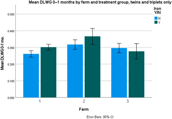 Mean 0–1-month DLWG in twins and triplets on the three farms.