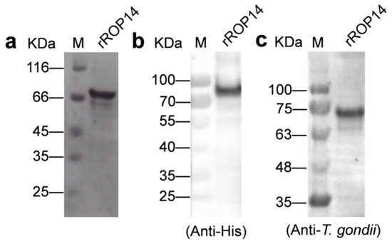 3.1. rTgROP14-His Proteins Are Recognized by Antibodies to T. gondii