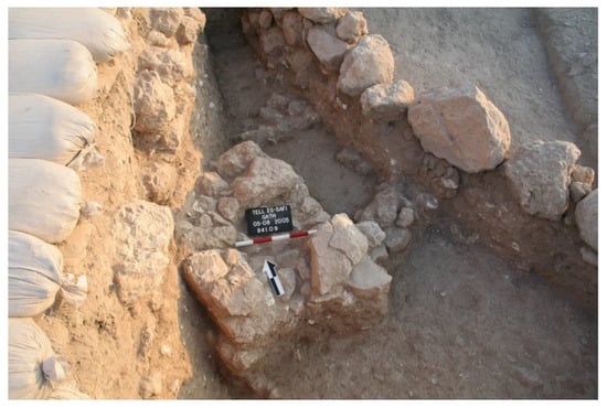 - Shai, I.; Uziel, J.; Maeir, A.M. The architecture and stratigraphy of Area E: Strata E1–E5. In Tell Eṣ-Ṣâfi/Gath I: Report on the 1996–2005 Seasons; Maeir, A.M., Ed.; Ägypten und Altes Testament 69; Harrassowitz: Wiesbaden, Germany, 2012; pp. 221–234. [Google Scholar]