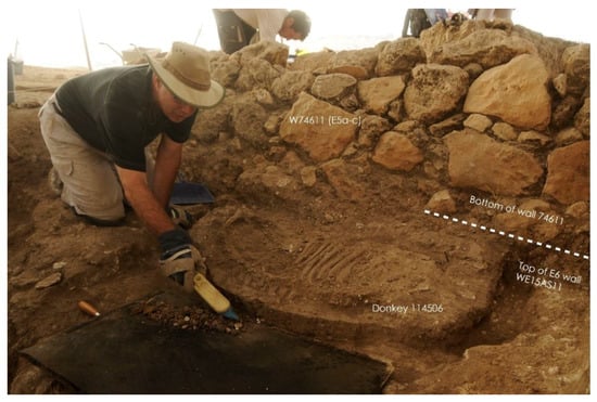 - Sapir-Hen, L.; Gadot, Y.; Lipschits, O. Ceremonial donkey burial, social status, and settlement hierarchy in the Early Bronze III: The case of Tel Azekah. In The Wide Lens in Archaeology: Honoring Brian Hesse’s Contributions to Anthropological Archaeology; Lev-Tov, J., Wapnish, P., Gilbert, A., Eds.; Lockwood Press: Atlanta, GA, USA, 2017; pp. 259–270. [Google Scholar]