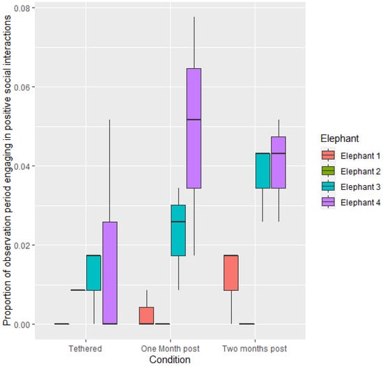 - Williams, E.; Carter, A.; Hall, C.; Bremner-Harrison, S. Social Interactions in Zoo-Housed Elephants: Factors Affecting Social Relationships. Animals 2019, 9, 747. [Google Scholar] [CrossRef] [Green Version]
