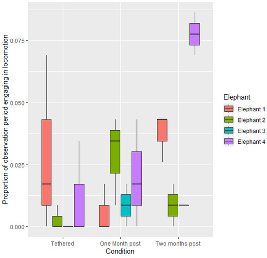 - Lukacs, D.; Poulin, M.; Besenthal, H.; Fad, O.; Miller, S.; Atkinson, J.; Finegan, E. Diurnal and Nocturnal Activity Time Budgets of Asian Elephants (Elephas maximus) in a Zoological Park. Anim. Behav. Cogn. 2016, 3, 63–77. [Google Scholar] [CrossRef]