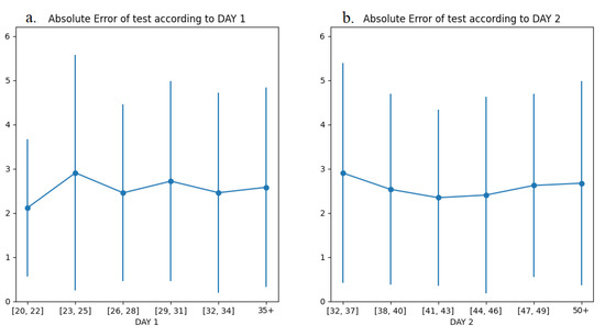Testing MAE with s.d. for 3-day intervals’ groups in: (a) Day 1, (b) Day 2.