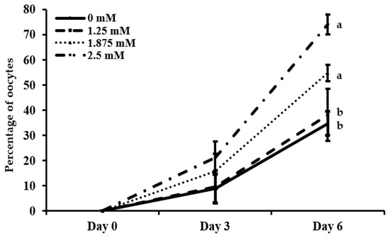 3.1. L-Carnitine Enhances the Growth of Buffalo Oocytes In Vitro