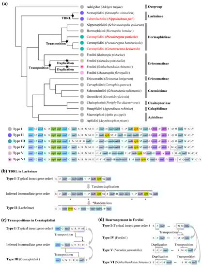 - Zhang, H.; Liu, Q.; Lu, C.; Deng, J.; Huang, X. The first complete mitochondrial genome of Lachninae species and comparative genomics provide new insights into the evolution of gene rearrangement and the repeat region. Insects 2021, 12, 55. [Google Scholar] [CrossRef] [PubMed]