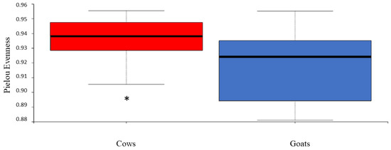 Chicago/Turabian StyleMahayri, Tiziana Maria, Kateřina Olša Fliegerová, Silvana Mattiello, Stefania Celozzi, Jakub Mrázek, Chahrazed Mekadim, Hana Sechovcová, Simona Kvasnová, Elie Atallah, and Giuseppe Moniello. 2022. "Host Species Affects Bacterial Evenness, but Not Diversity: Comparison of Fecal Bacteria of Cows and Goats Offered the Same Diet" Animals 12, no. 16: 2011. https://doi.org/10.3390/ani12162011