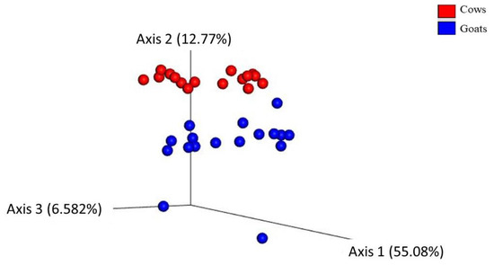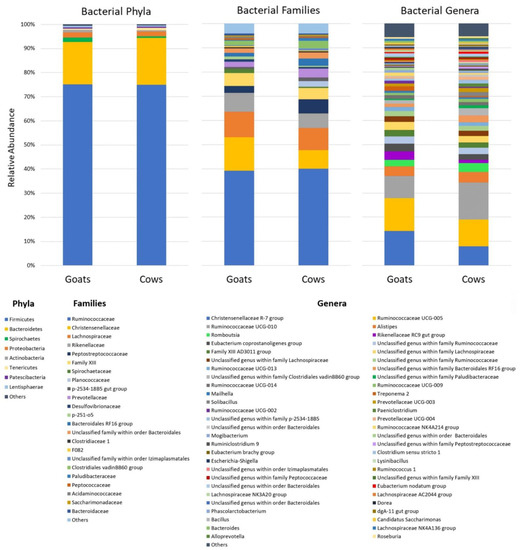 Mahayri TM, Fliegerová KO, Mattiello S, Celozzi S, Mrázek J, Mekadim C, Sechovcová H, Kvasnová S, Atallah E, Moniello G. Host Species Affects Bacterial Evenness, but Not Diversity: Comparison of Fecal Bacteria of Cows and Goats Offered the Same Diet. Animals. 2022; 12(16):2011. https://doi.org/10.3390/ani12162011