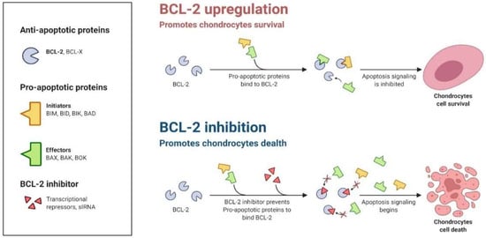 Recent research has focused on the idea that, in contrast to pro-apoptotic, the anti-apoptotic approach in tibial dyschondroplasia may occasionally be advantageous as it reduces the inflammatory response [45]. In fact, an earlier regulation of apoptosis may be beneficial for chondrocytes’ survival. Moreover, local and international industries adopt a proper nutritional strategy for preventing tibial dyschondroplasia (e.g., a proper ratio of calcium, phosphorus, and vitamin D [147,148]) and vaccination for other bone disorders, e.g., viral and bacterial arthritis, chondronecrosis, osteomyelitis, etc. [149,150].
